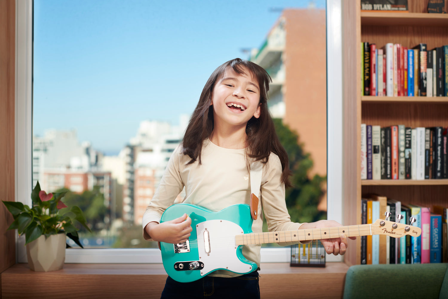 The Fender x Loog Telecaster uses standard guitar strings and tuning. This is why everything you learn can be applied on a 6-string guitar too.