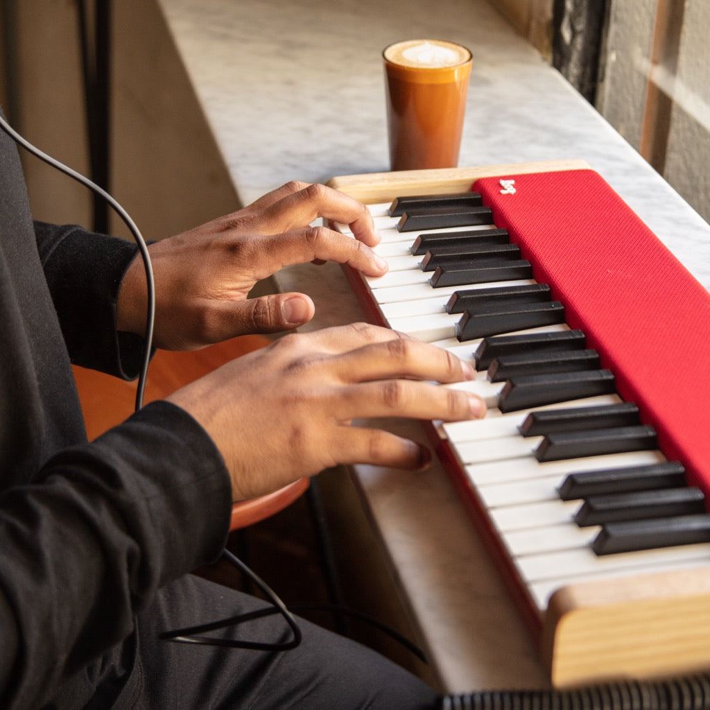 With built-in speakers, rechargeable battery, MIDI over USB, velocity-sensitive keys and support for a sustain pedal, the Loog Piano is an ultra portable keyboard suitable for beginners and pros alike.