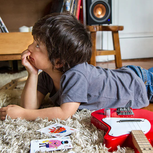 A small 3-string electric guitar! The Loog Pro Electric comes bundled with flashcards, an app, and free video lessons. With Loog, kids get to play songs from the very beginning, feeling rewarded and encouraged to keep on playing and learning.